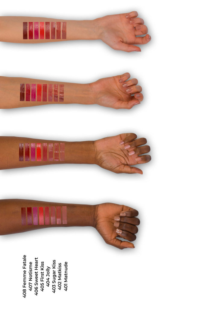 | Mattemoist Lipgloss | 402, 404 Jolly, 407 Motisme, 408 Femme Fatale, 413 Coral Touch, 415 Shy Berry, 416 Clover Brown |